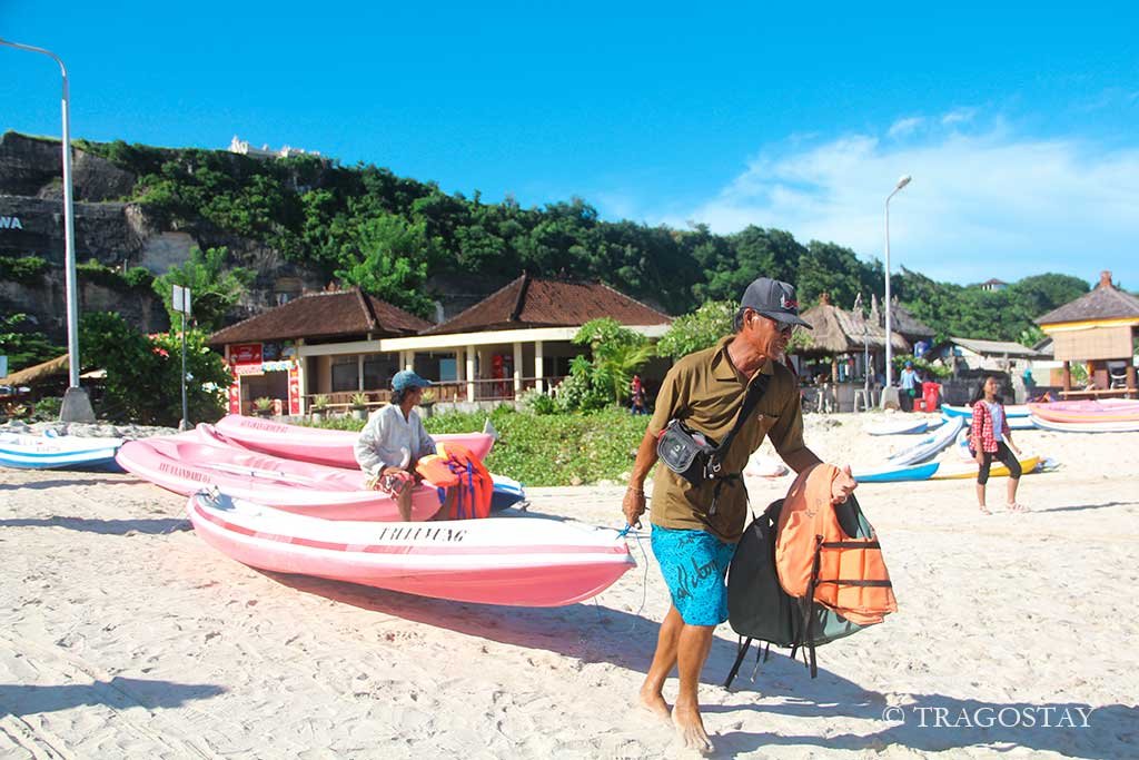 If you are looking for things to do in Kutuh, Pandawa Beach offers plenty of active options. First, you must try paddling the colorful Pandawa canoes across the shallow reef. The water is very transparent, so you can see the seafloor quite clearly from your boat. Moreover, the waves are very small because the coral reef protects the inner lagoon area. Therefore, it is a very safe activity for beginners and also young children. You can rent a life jacket and a paddle for a very affordable price.