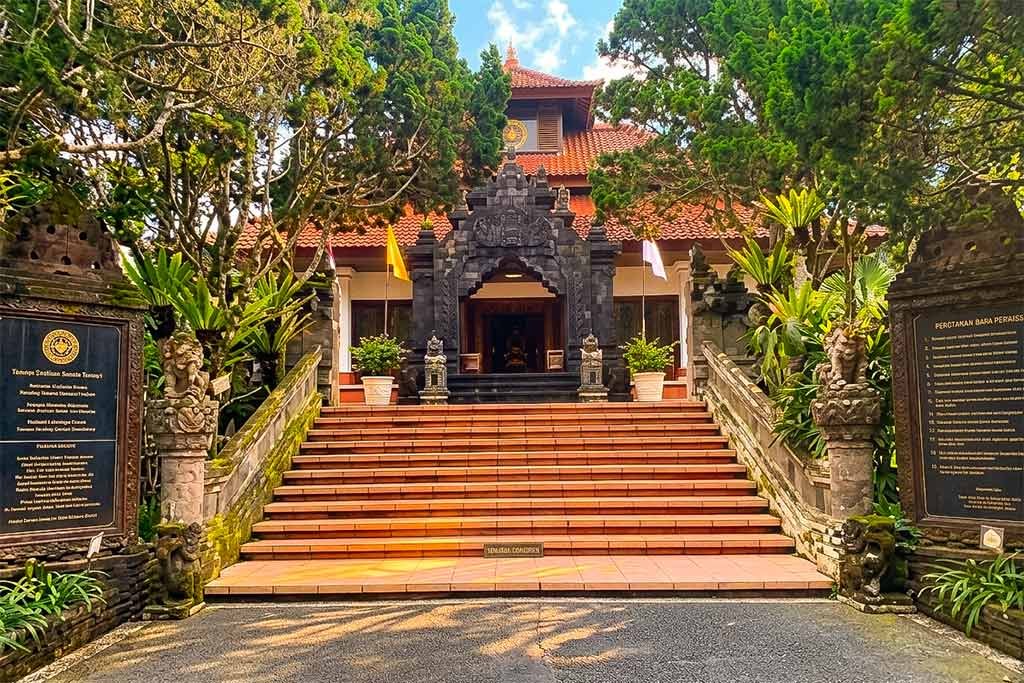 To experience Vihara Dharma Giri at its best, we highly recommend arriving in the early morning around 8:00 AM or 9:00 AM. At this time, the mountain mist often lingers around the trees, creating a mystical and ethereal atmosphere. Furthermore, the temperatures are much cooler, making the walk through the complex very pleasant. Conversely, visiting in the late afternoon also offers beautiful soft lighting for photography. However, avoid visiting during heavy rain as the outdoor platforms can become slippery.